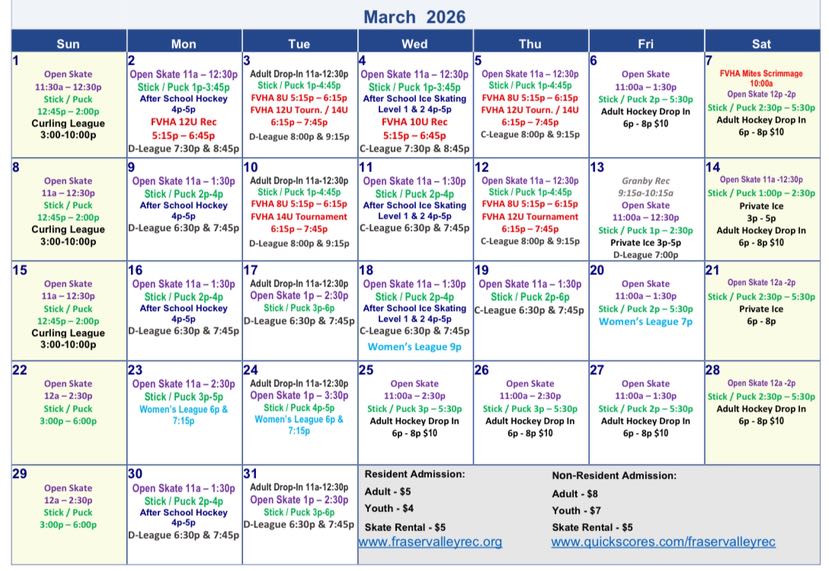All Fraser Valley Rec league and tournament schedules are posted on QuickScores.